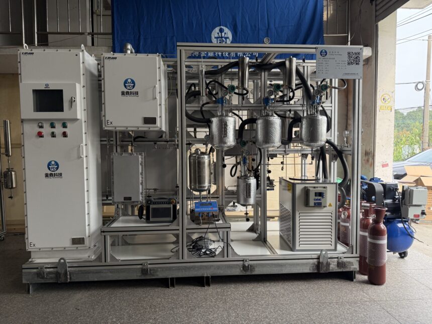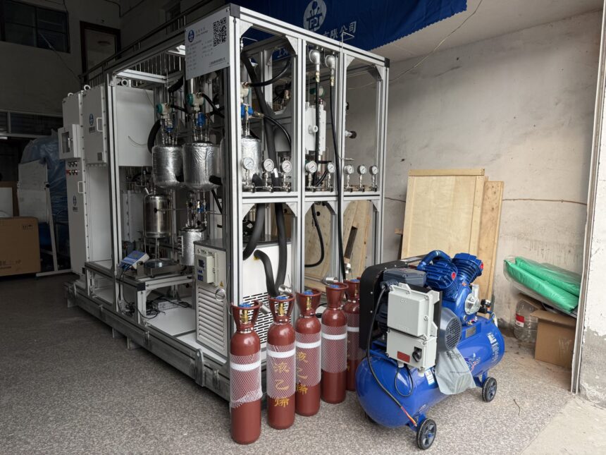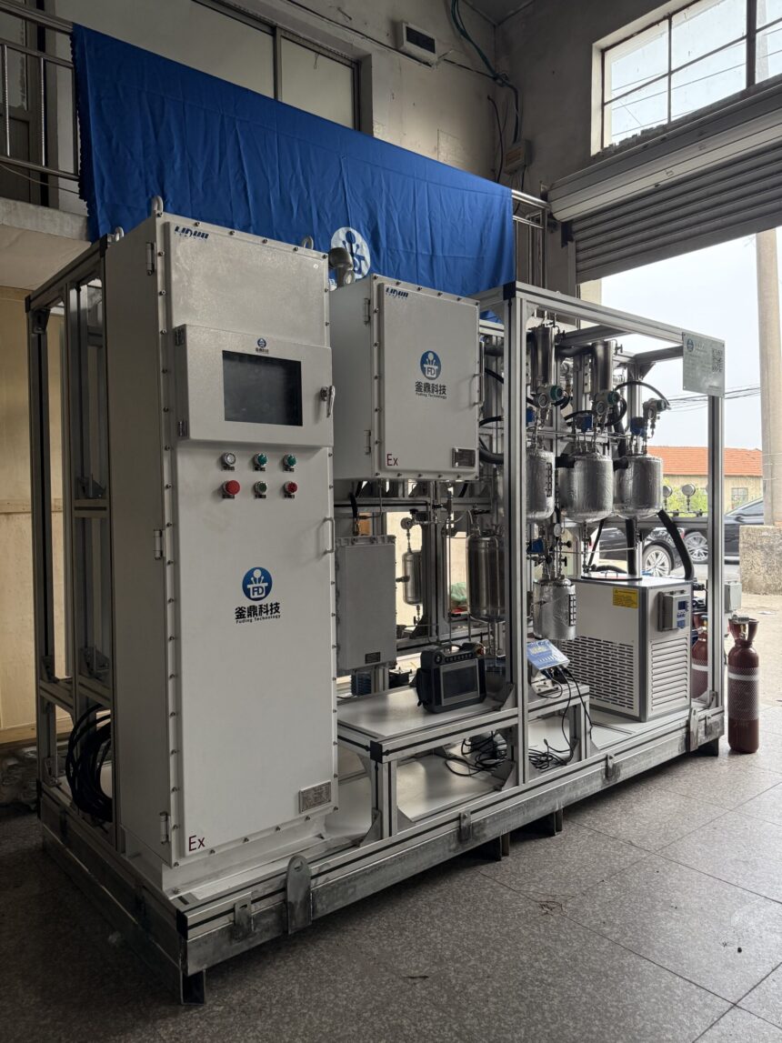 乙醇脱水制乙烯装置物料流量与系统温度采用PLC控制控制系统,为了提高系统的稳定性及准确性,该装置对气体流量、温度等参数实现仪表自动控制及数据显示。系统具有异常工作状态报警以及自动排险功能。为保证实验的安全运行,整体控制系统具有异常工作状态报警,装置具有超温、声、光报警,并能自动切断设备供电和停止相关电路。